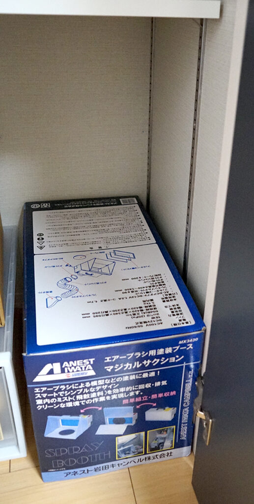 塗装ブースを検討した結果、マジカルサクションを導入しました。理由は収納性。私の賃貸マンション間取りで塗装ブースの常設は無理。都度の出し入れが必要でした。